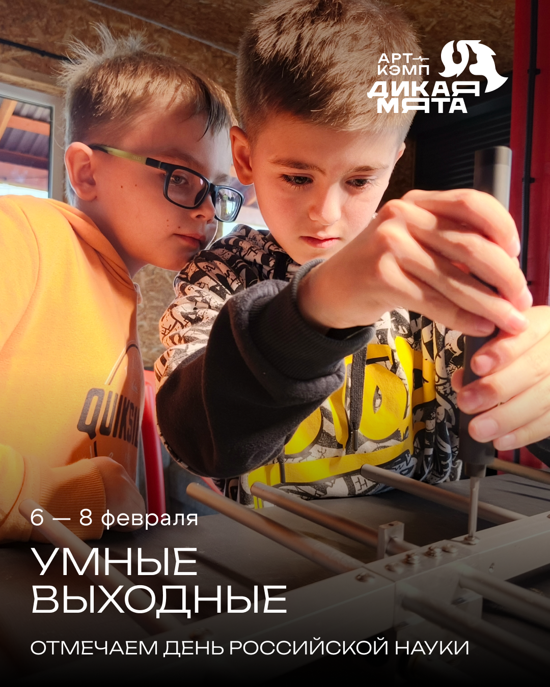 С 6 по 8 февраля отмечаем День российской науки в арт-кэмпе «Дикая Мята». Все наши мастер-классы будут пронизаны научным духом — от визуализации данных до эко-творчества, соединяющего природу и креативность.
