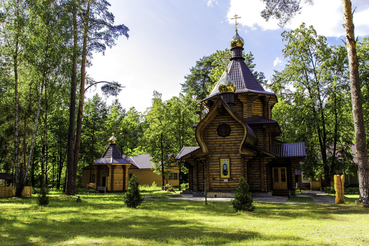 Красивая деревянная церквушка расположилась посреди леса совсем недалеко от берега Оки.